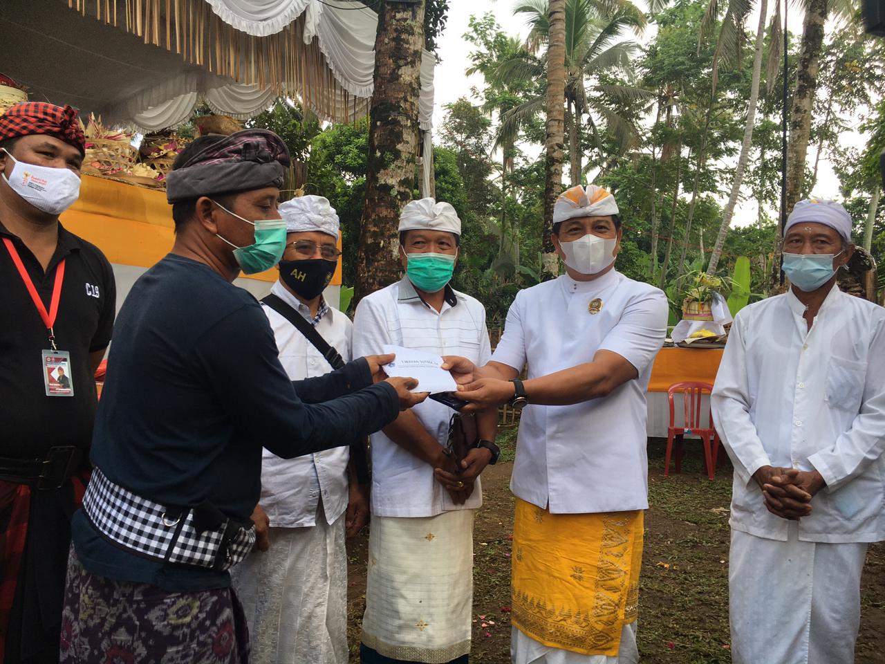 Sebagai bentuk bhakti dan dukungan terhadap pelaksanaan upacara ini, Wayan Suyasa menyerahkan dana punia sebesar Rp 7,5 juta dan Nyoman Suka sebesar Rp 1 juta.