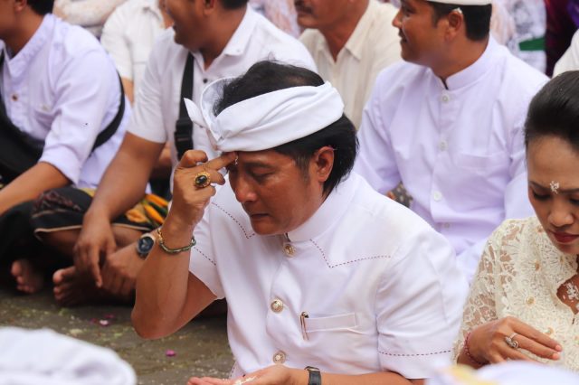 Bupati Badung I Nyoman Giri Prasta, menghadiri puncak piodalan di Pura Penataran Agung Pucak Antapsai Bon, Desa Belok Sidan, Petang, pada Purnama Kedasa Wraspati Paing Wuku Dukut, Kamis (17/3). Dalam kesempatan ini turut mendampingi Bupati, anggota DPRD Badung I Gst Agung Ayu Inda Trimafo Yudha, Penglingsir Puri Carangsari, Kadis Kebudayaan Badung I Gde Eka Sudarwitha, Plt. Camat Petang I Gst. Bagus Adi Parwata, Perbekel Desa Belok I Made Rumawan. Piodalan dipuput oleh Ida Pedanda Gede Pasuruan Manuaba Griya Magelung Sangeh, dan Ida Pedanda Gede Isana Manuaba Griya Lebah Abiansemal.