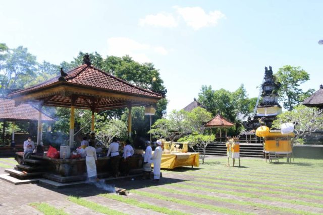Bertepatan dengan Rahina Kajeng Kliwon Enyitan dilaksanakan upacara “Nuntun Ida Bhatara” di Pura Maha Widya Saraswati Kampus Jimbaran, Senin (4/4/2022). Upacara ini digelar sehubungan dengan rencana perbaikan beberapa pelinggih dan bangunan di areal pura yang segera akan dilaksanakan.