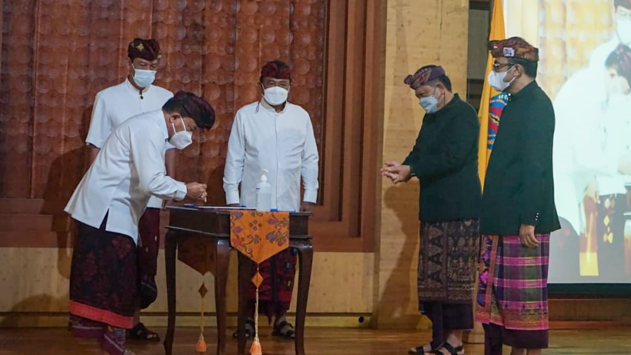 Dalam kesempatan tersebut, Walikota Rai Mantra bersama Wakil Walikota Jaya Negara turut menyerahkan buku kepada Forum Koordinasi Pimpinan Daerah (Forkopimda) Kota Denpasar.