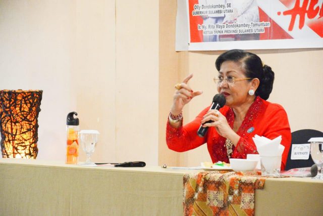 KAPASITAS – Ny. Putri Koster saat jadi narasumber peningkatan kapasitas kader perempuan di perdesaan Sulawesi Utara.