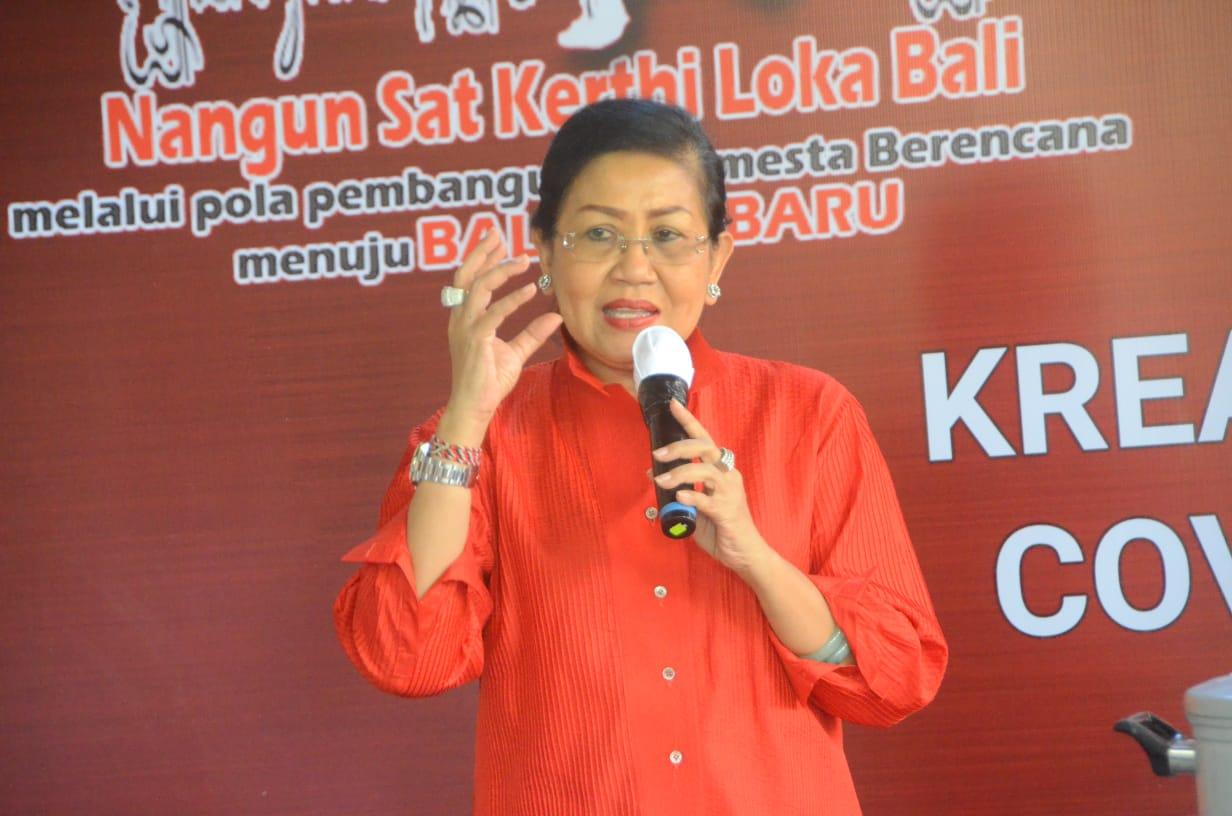 Ketua Dewan Kerajinan Nasional Daerah (Dekranasda) Provinsi Bali Ny. Putri Suastini Koster menghadiri kegiatan pelatihan cara pembuatan jajanan pasar dan cara pemasaran online melalui media sosial yang digelar oleh Kamar Dagang dan Industri (KADIN) Bali bekerja sama dengan Perkumpulan Perempuan Wirausaha Indonesia (PERWIRA) Bali, Sabtu (30/5/2020).
