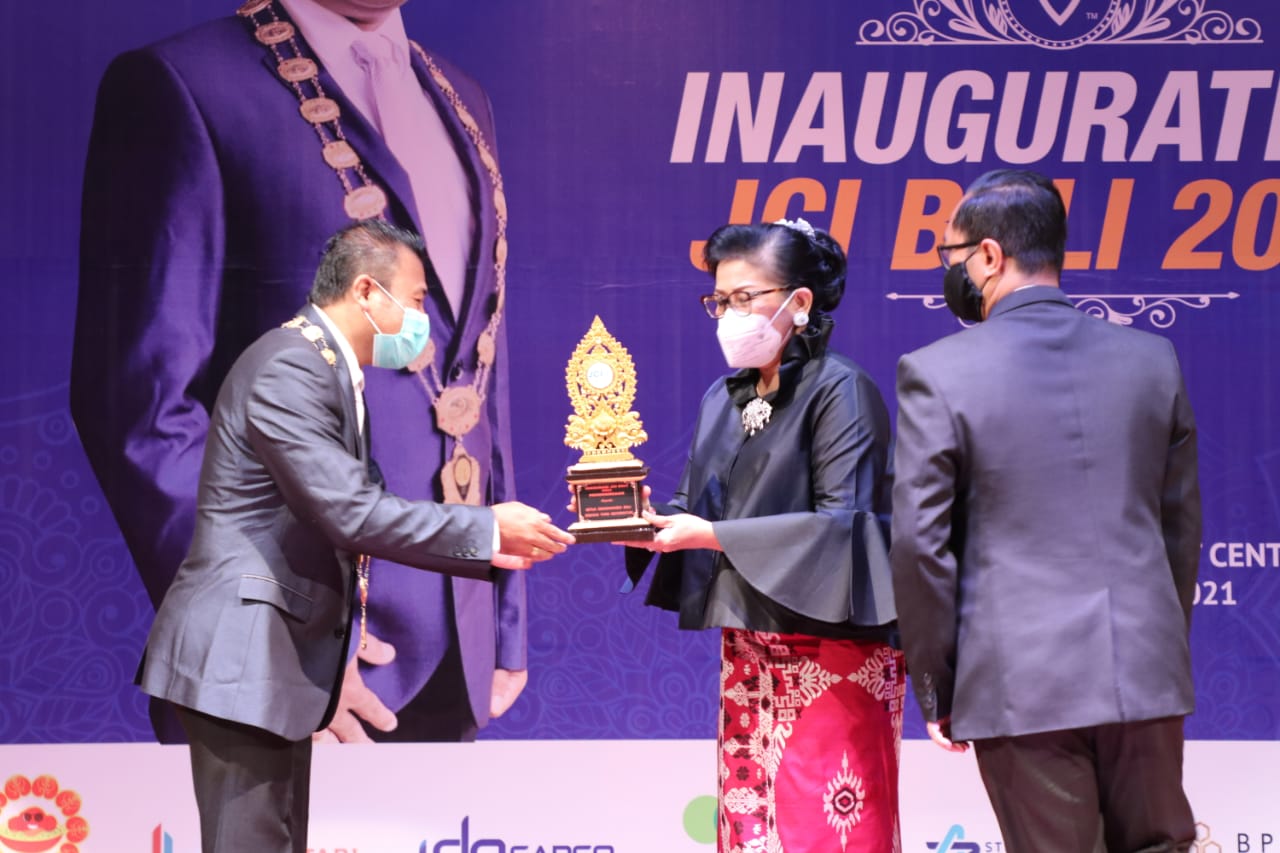 JCI – Ketua Dekranasda Bali Ny. Putri Suastini Koster hadiri serah terima jabatan Lokal President of JCI Bali, Sabtu (9/1/2021).