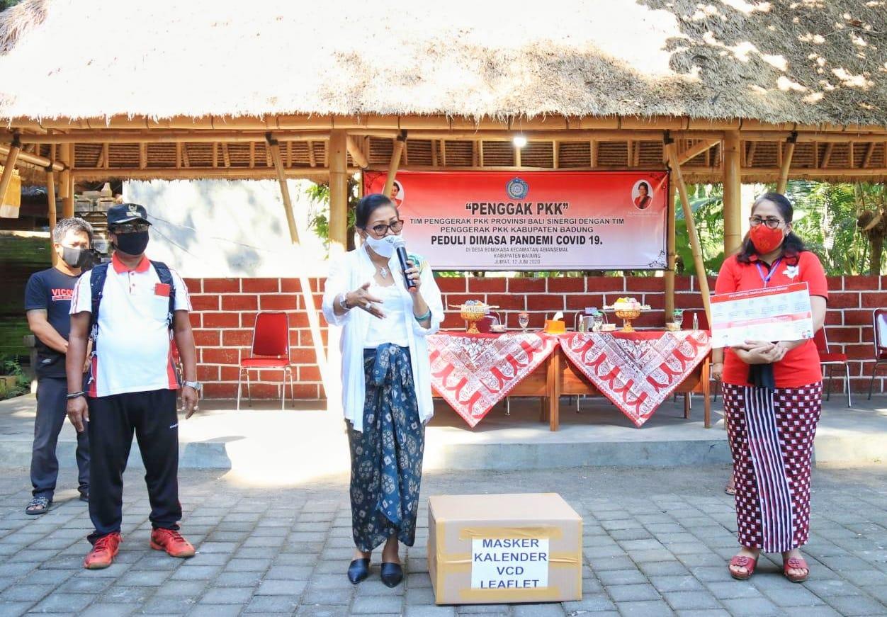 PKK Provinsi Bali bekerja sama dengan PKK Kabupaten Badung melaksanakan ‘Penggak PKK’ dengan cara urunan antaranggota PKK untuk pengadaan sembako yang kemudian dibagikan kepada warga yang terdampak covid-19, khususnya mereka yang tidak terdaftar sebagai penerima bantuan dari pemerintah.