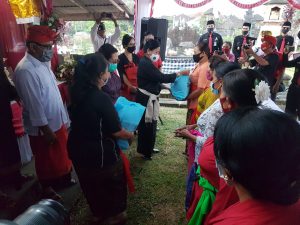Saat ramah tamah, acara juga diisi dengan penyerahan bantuan sembako serta masker oleh Putri Koster kepada warga di Desa Babahan. Bantuan tersebut berasal dari Pemprov Bali dan bantuan sejumlah BUMN di Bali.