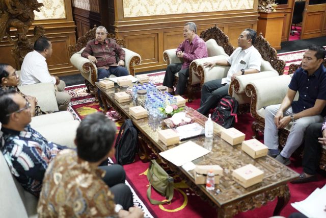 Ketua DPRD Kabupaten Badung Putu Parwata menerima audensi Pengurus Kaum Bapak se-Bali atau Persekutuan Bapak Kristya Winangun (PBKW) Gereja Kristen Protestan di Bali (GKPB) di ruang kerjanya, Kantor Sekretariat DPRD Kabupaten Badung, Selasa, 16 Januari 2024.