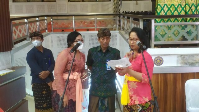 MODERATOR – Putu Sri Harta Mimba siap menjadi moderator sesi pertama di Seminar Bhakti Desa Tahun 2022.