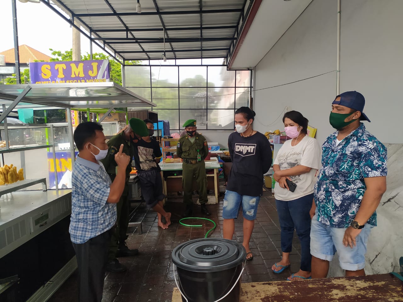 UMKM – Petugas dari Kelurahan Ubung melakukan sosialisasi prokes di kalangan pelaku UMKM, Selasa (15/12/2020).