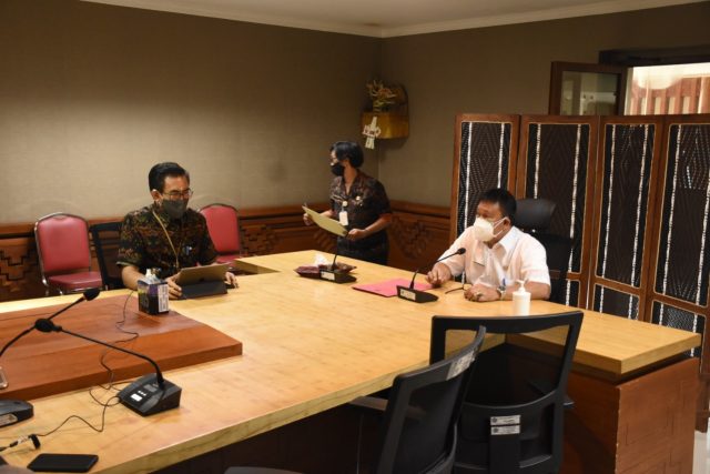 Sekretaris Daerah Kota Denpasar, AAN Rai Iswara turut mengikuti acara didampingi Kaban Litbang Putu Naning Djayaningsih, Kabag Organisasi Setda Kota Denpasar, IB Alit Adi Mertha serta Kabag Humas Protokol, Dewa Gede Rai di Graha Sewaka Dharma pada Rabu (30/9).