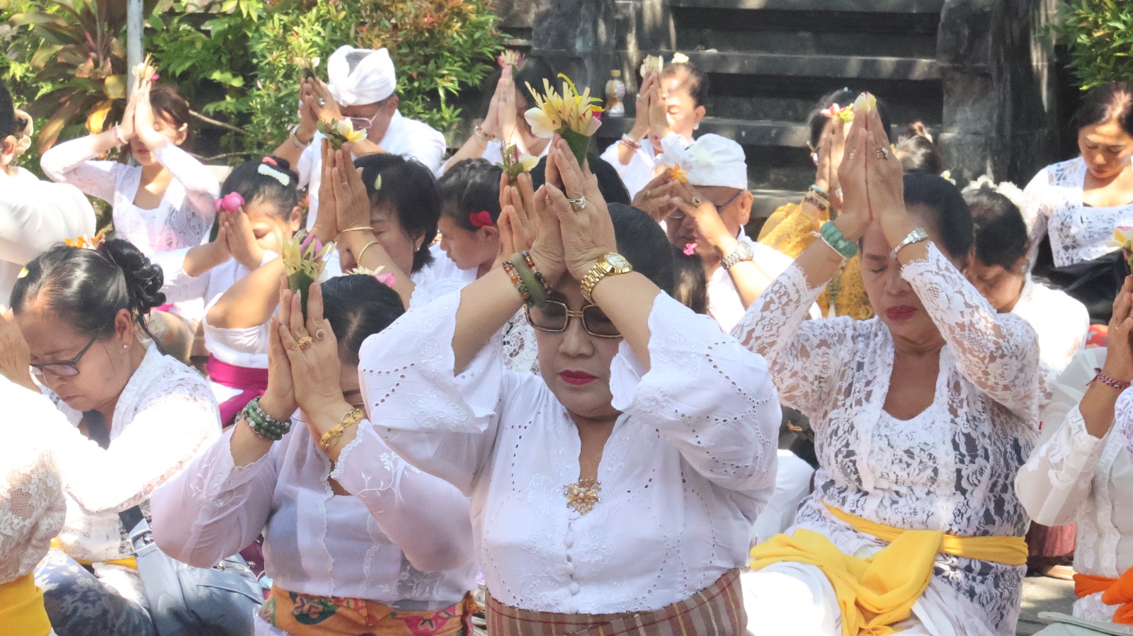 MUANG PAMIUT – Ketua BKOW Provinsi Bali Ny. Tjok Putri Hariyani Sukawati menggelar rangkaian acara Muang Pamiut di sejumlah Pura Kahyangan Jagat se-Bali.