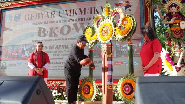 Wakil Gubernur Bali Tjokorda Oka Artha Ardhana Sukawati yang juga sebagai Pembina Badan Kerjasama Organisasi Wanita (BKOW), secara resmi membuka Gebyar UMKM IKM Dalam Rangka HUT Ke-60 BKOW di Lapangan Timur Bajra Sandhi-Denpasar, pada Sabtu (15/4).