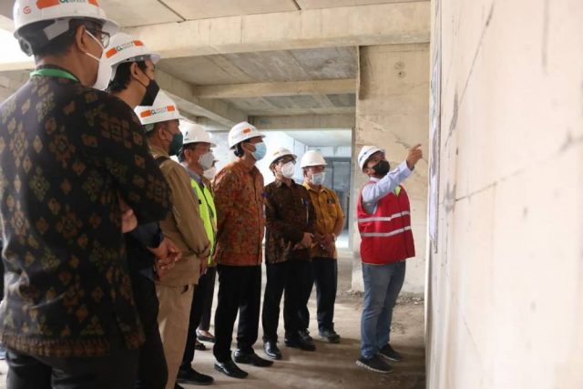 RS GIGI DAN MULUT – Rektor Prof. Nyoman Gde Antara meninjau pembangunan gedung RS Gigi dan Mulut Universitas Udayana, Selasa (11/1/2022).