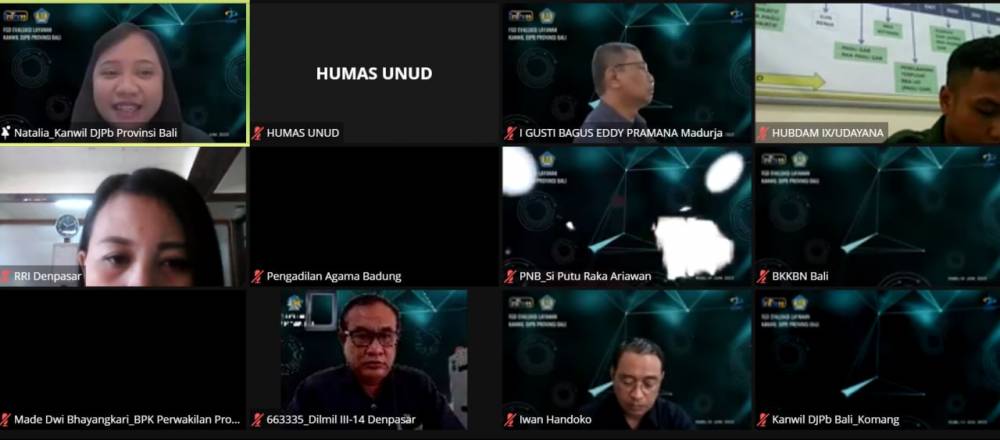 Rektor Universitas Udayana Prof. I Nyoman Gde Antara menghadiri Focus Group Discussion (FGD) Evaluasi Layanan yang digelar secara daring melalui aplikasi Zoom oleh Kanwil DJPb Provinsi Bali, Rabu (14/6/2023).
