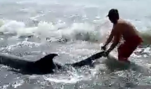 Dikatakanya, sejumlah relawan turun tangan untuk mengembalikan keempat ekor lumba-lumba itu ke laut. Upaya mendorong lumba-lumba tersebut ke lautan membutuhkan waktu yang tak sebentar. Hal ini meski telah didorong ke laut, lumba-lumba itu kembali terdampar di tepi pantai.