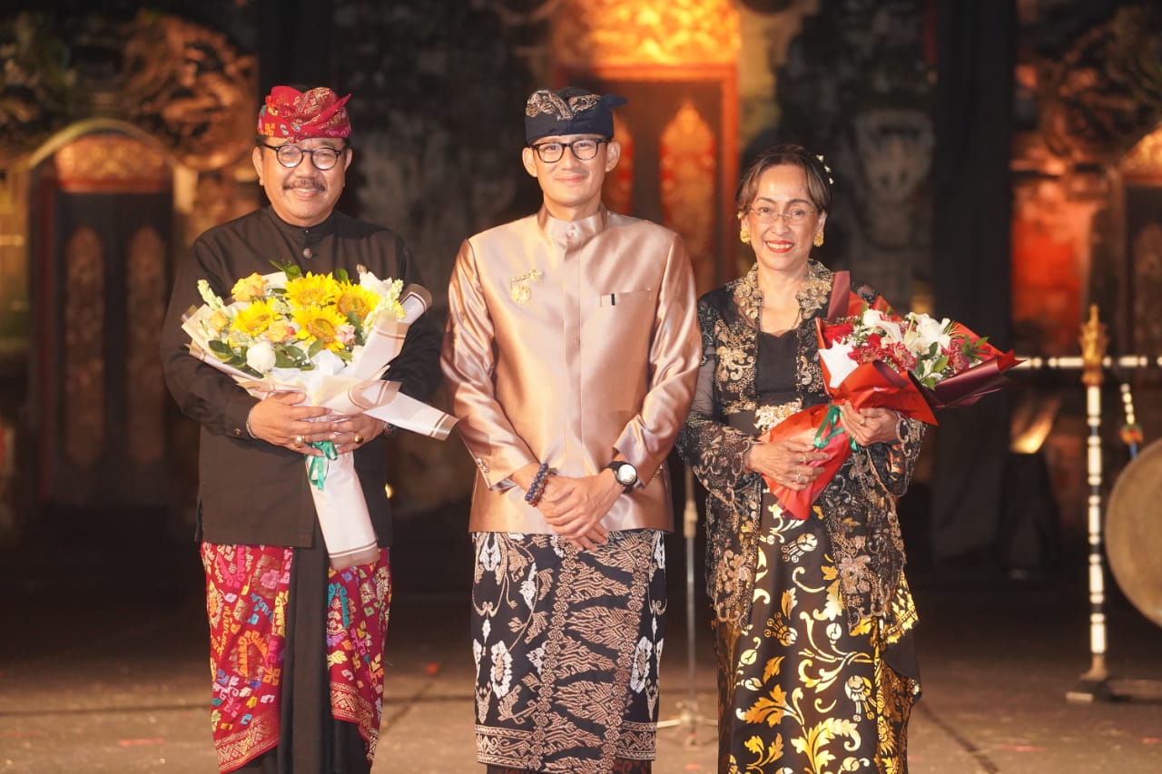 Pembukaan Pagelaran Topeng Topeng ditandai pemukulan gong secara bergantian oleh Menteri Sandiaga Uno, Wagub Cok. Ace dan Sukmawati Soekarno Putri. Pagelaran Topeng Topeng berdurasi 2 jam ini mengangkat tema Tri Hita Karana. Melibatkan beberapa grup tari, pagelaran juga dimaksudkan mengenang maestro I Wayan Kakul dan semua kreativitas leluhur topeng Bali. Pagelaran yang digarap apik dengan nuansa kontemporer modern dan tradisional itu mampu memukau penonton yang memadati panggung terbuka Ardha Candra. (sar/hmprov)