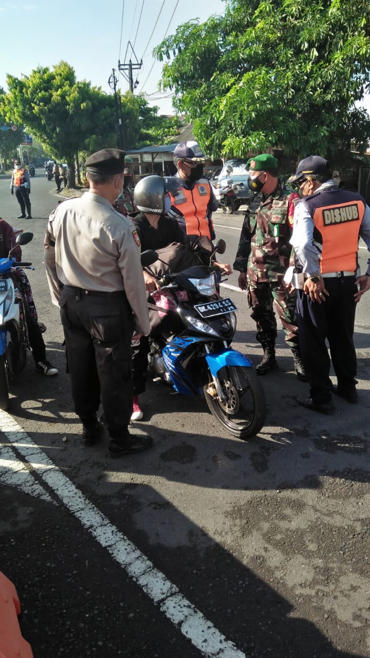 Tim Yustisi Kota Denpasar bina 10 orang yang salah menggunakan masker. Pembinan diberikan saat melaksanakan penertiban protokol kesehatan pelaksanaan pembatasan kegiatan masyarakat (PPKM) skala mikro Jalan Gunung Galunggung Denpasar, Pasar Pula Kerthi, dan areal Lapangan Puputan Badung Denpasar I Gusti Made Agung, Rabu (12/5).