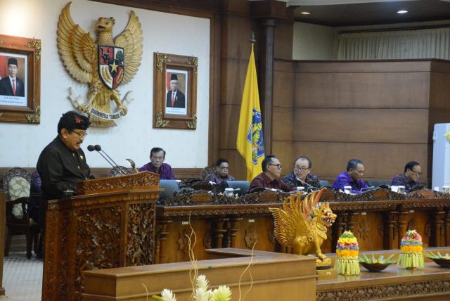 Gubernur Bali yang diwakili Wagub Cok Ace memebrikan jawaban terhadap pendangan umum fraksi-fraksi DPRD Bali. Jawaban ini disampaikan dalam rapat paripurna ke-39 Masa Persidangan III Tahun 2023, Minggu malam (3/9/2023).
