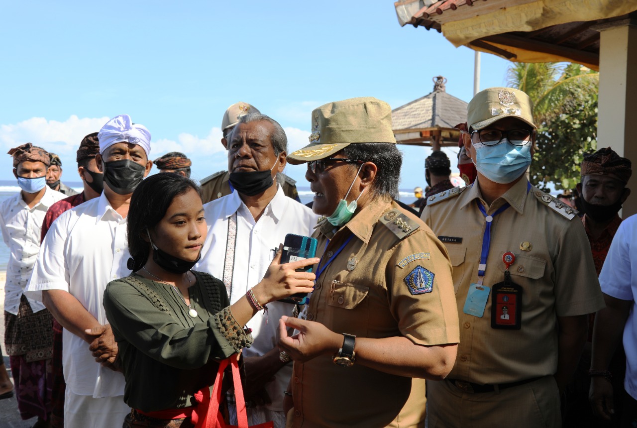 PENGECEKAN – Bupati Giri Prasta saat melakukan kunjungan pengecekan kesiapan objek wisata Pantai Pandawa dalam menyambut budaya hidup baru, Selasa (23/6).