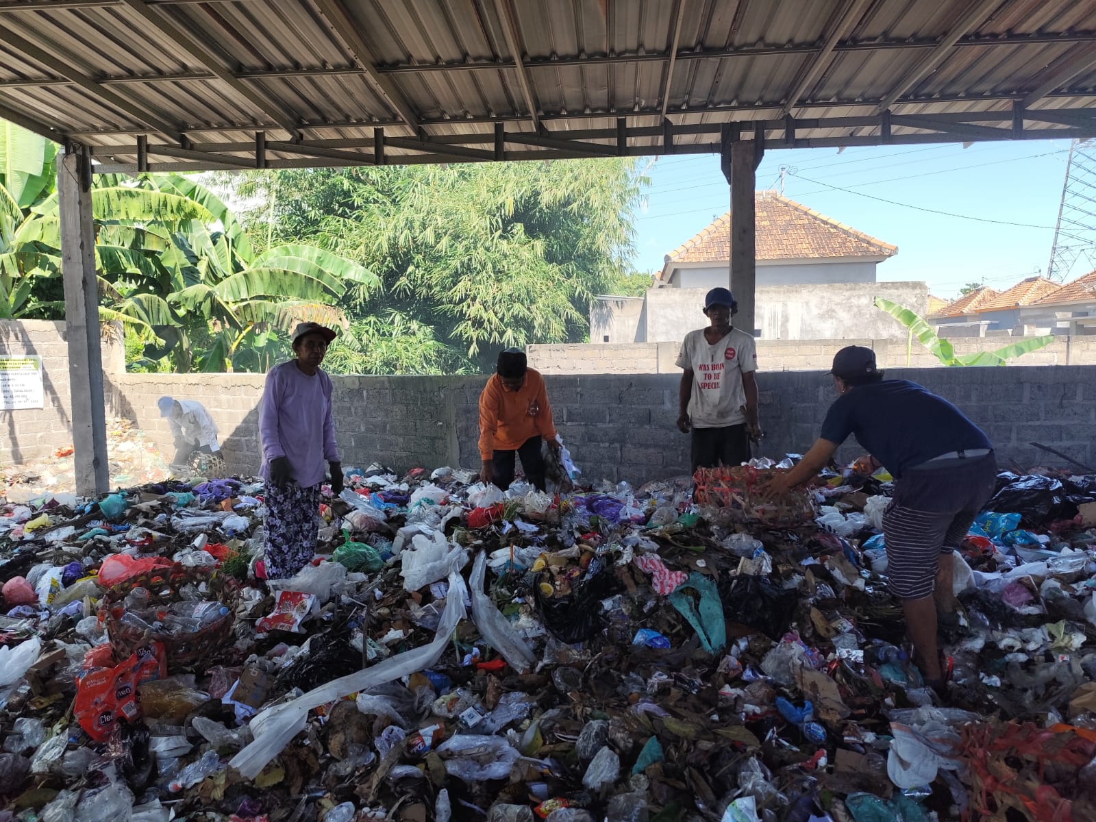 PILAH SAMPAH – Petugas operasional di TPST Desa Pemaron sedang memilah sampah untuk selanjutnya akan diproses pada mesin pencacah sehingga hasilnya dapat diolah kembali.