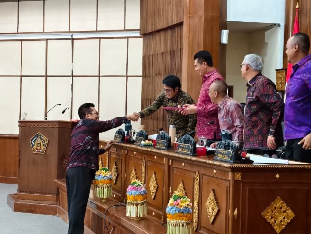 DPRD Provinsi Bali, Rabu (4/9/2025) menggelar rapat paripurna ke-1 masa persidangan I tahun sidang 2025-2026. Rapat paripurna mengagendakan penjelasan Dewan terkait dua raperda inisiatif yakni Perda tentang penyelenggaraan layanan angkutan sewa khusus pariwisata berbasis aplikasi di Provinsi Bali dan Raperda tentang penyelenggaraan keterbukaan informasi publik.