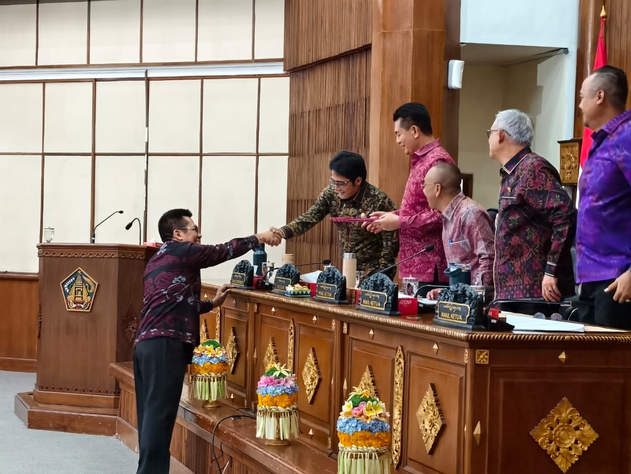 Rapat paripurna dipimpin Ketua DPRD bali Dewa Made Mahayadnya didampingi tiga wakilnya yakni Wayan Disel Astawa, Ida Komang Kresna Budi dan I Komang Nova Sewi Putra bersama mayoritas anggota Dewan. Acara yang berlangsung di Gedung Wiswa Sabha Kantor Gubernur tersebut juga dihadiri Wagub Nyoman Giri Prasta, Sekda Dewa Made Indra dan pimpinan organisasi perangkat daerah (OPD) serta undangan lainnya.