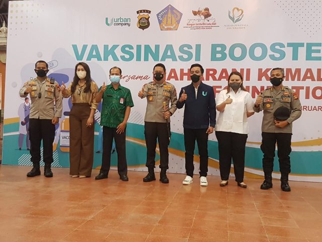 Polda Bali berkolaborasi dengan Urban Company melalui Yayasan Maharani Kemala Foundation, Senin dan Selasa (22/2/2022) menggelar vaksinasi ketiga booster bagi masyarakat Bali. Vaksinasi ini digelar di Gedung Nari Graha Renon, Denpasar.