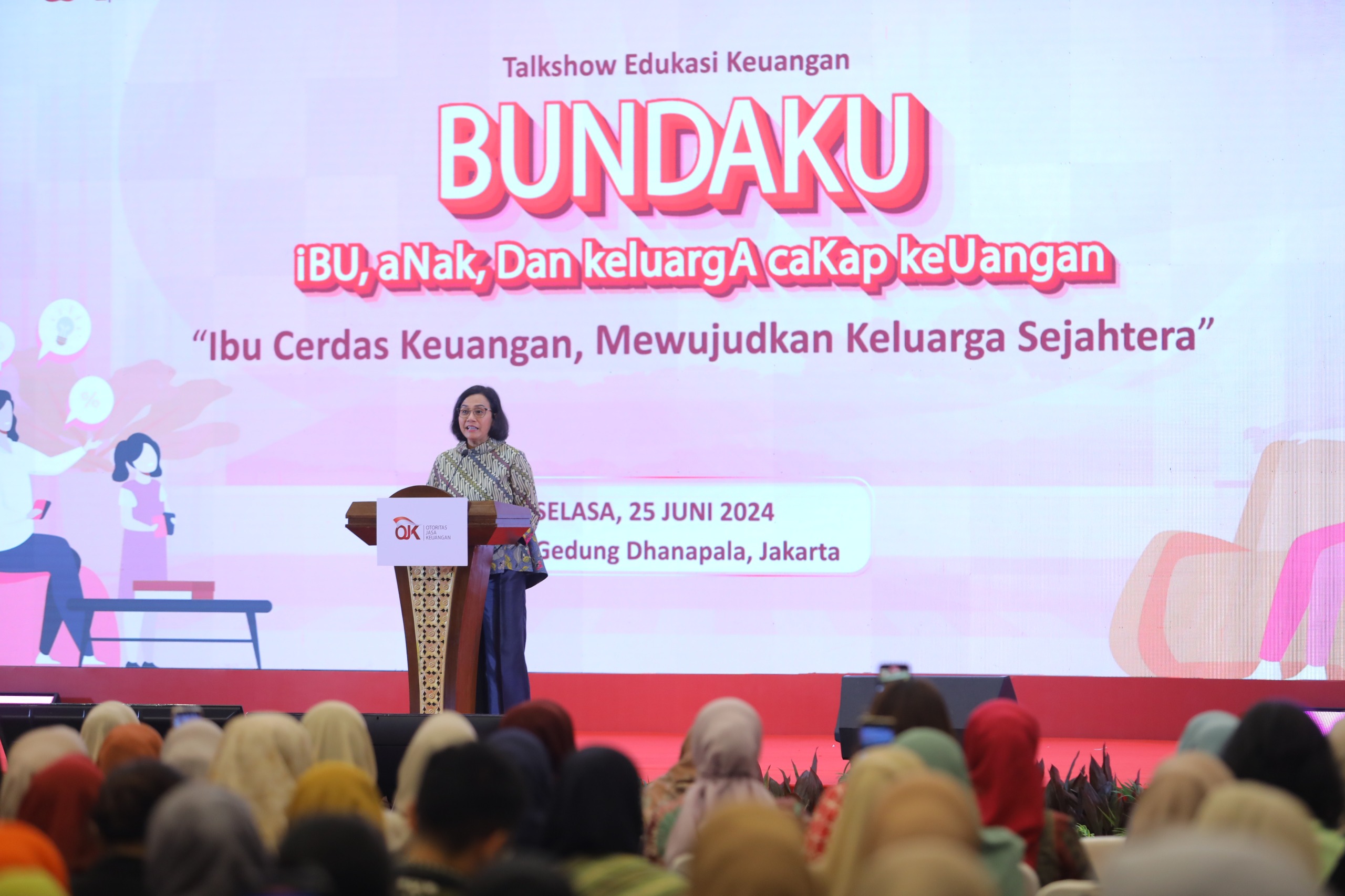 Demikian disampaikan Menteri Keuangan Sri Mulyani, Ketua Dewan Komisioner OJK Mahendra Siregar dan Kepala Eksekutif Pengawas Perilaku Pelaku Usaha Jasa Keuangan dan Pelindungan Konsumen OJK Friderica Widyasari Dewi dalam acara Edukasi Keuangan BUNDAKU (Ibu, Anak, dan Keluarga Cakap Keuangan) dengan tema “Ibu Cerdas Keuangan, Mewujudkan Keluarga Sejahtera” di Jakarta, Selasa (25/6/2024).