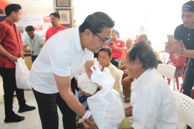 BANTUAN SEMBAKO – Wakil Walikota Denpasar I Kadek Agus Arya Wibawa menyalurkan bantuan paket sembako dari Kementerian Sosial RI kepada penyandang disabilitas dan lansia Kota Denpasar, Jumat (19/4).