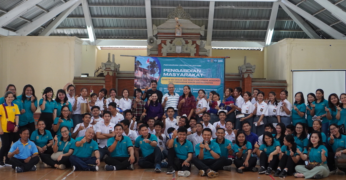 Program Studi Magister Hukum Kesehatan (PSMHKes) Pascasarjana Universitas Udayana (Unud) melaksanakan kegiatan pengabdian kepada masyarakat pada Jumat, 13 Oktober 2023. Kegiatan yang dilaksanakan di Aula SMAN 1 (Smansa) Denpasar ini mengusung tema “Dampak Seks Bebas pada Remaja dan Mengatasi Stres Akademik dari Pandangan Hukum dan Kesehatan”. Selain mahasiswa Magister Hukum Kesehatan Angkatan ke-2, acara ini juga dihadiri dosen-dosen MHKes yang berkesempatan hadir, yaitu Koordinator PSMHKes, Prof. Dr. dr. RA Tuty Kuswardhani, Sp.PD, KGer, M.Kes, MH, Prof. Dr. I Wayan Parsa, SH, M.Hum, Prof. Dr. Ni Ketut Supasti Dharmawan, SH, M.Hum, LLM, Dr. dr. IB Fajar Manuaba, Sp.OG(K) MARS dan Dr. dr. I Gde Sastra Winata, M.Biomed., Sp.OG, Subsp. Onk, dan kegiatan ini juga melibatkan anak kelas X di SMA Negeri 1 Denpasar.