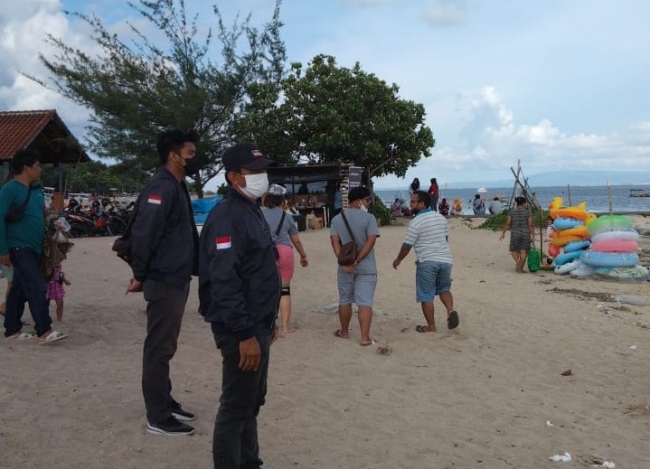 Pemantauan prokes oleh Satgas Densel di pantai Sanur.
