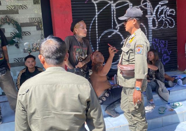 ANAK PUNK – Satpol PP Kota Denpasar menertibkan anak punk di Jalan Serma Mendra, Kamis (14/12/2023).