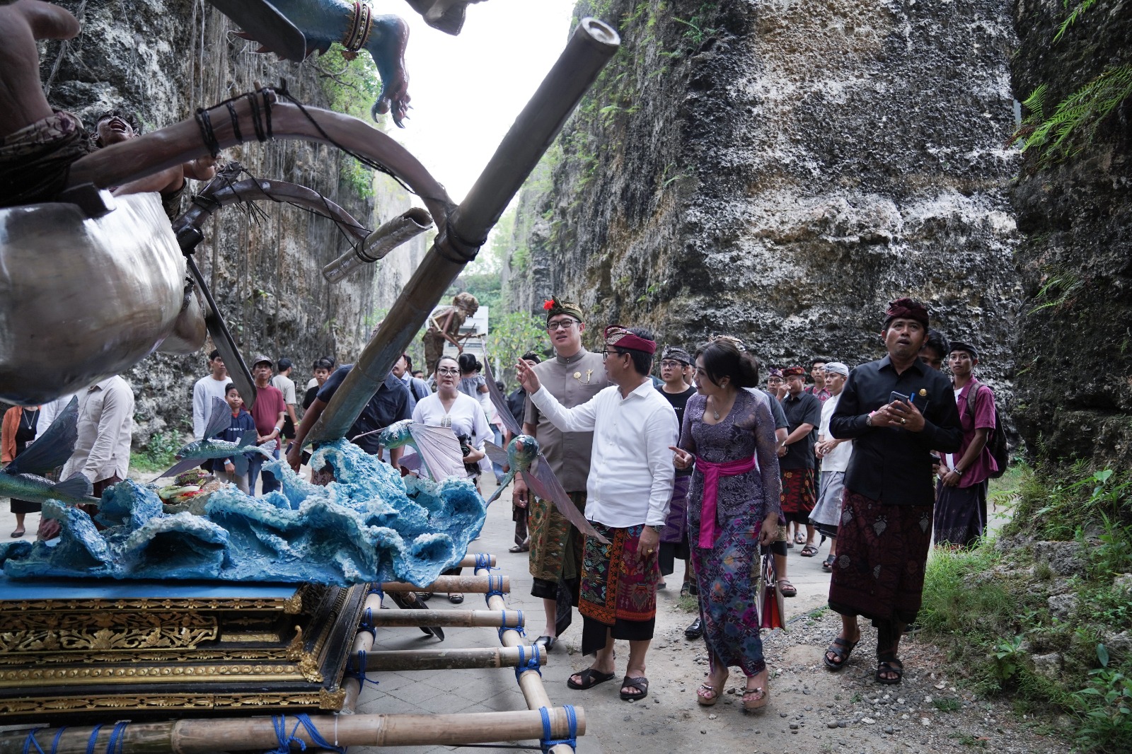 Sekda Badung I Wayan Adi Arnawa mewakili Bupati Badung membuka acara Festival Dresta Lango Ogoh-ogoh Garuda Wisnu Kencana (GWK) dalam rangka Perayaan Hari Raya Nyepi Tahun Caka 1945 di Lotus Pond Garuda Wisnu Kencana (GWK) Cultural Park, Minggu (26/3). Festival Dresta Lango Ogoh-ogoh yang diinisiasi GWK bekerja sama dengan Pemkab Badung ini turut dihadiri Ketua DWP Badung Nyonya Rasniathi Adi Arnawa, Kepala Dinas Kebudayaan Kabupaten Badung I Gede Eka Sudarwitha, camat se-Badung, Direktur Operasional GWK Cultural Park Stefanus Yonathan Astayasa dan seluruh peserta lomba ogoh-ogoh di Kabupaten Badung