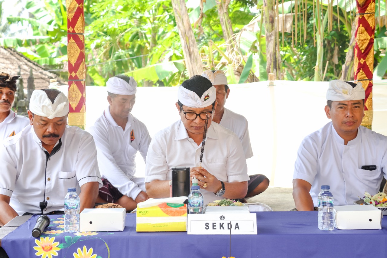 Bertepatan dengan Hari Tumpek Wariga, Sekretaris Daerah Kabupaten Badung I Wayan Adi Arnawa hadir sekaligus melaksanakan persembahyangan bersama serangkaian karya melaspas dan mendem pedagingan di Pura Subak Abian Jemeng Sari Banjar Anyar, Desa Sembung, Kecamatan Mengwi, Sabtu (10/12). Turut hadir Camat Mengwi Nyoman Suhartana, Perbekel Sembung Ketut Sukerta, Bendesa Adat Sembung Sobangan Made Sarja Erwanto, Pekaseh Subak Abian Jemeng Sari Ketut Wardana serta krama pengempon pura setempat.