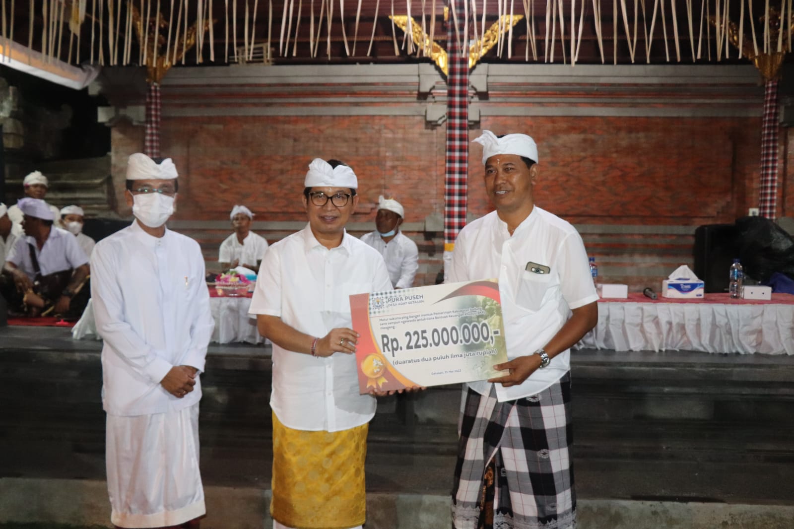 Sekretaris Daerah Kabupaten Badung I Wayan Adi Arnawa menghadiri Upacara Ngeratep, Melaspas lan Pasupati Ida Bhatara Tapakan Ratu Gede di Pura Puseh Desa Adat Getasan, Kecamatan Petang, Rabu (25/5). Dalam kesempatan ini Pemerintah Kabupaten Badung membantu dari dana BKK Rp 225 juta dan turut dihadiri pula Kepala Dinas Kebudayaan Kabupaten Badung I Gde Eka Sudarwitha, serta tokoh masyarakat setempat.