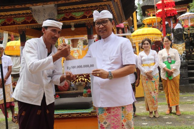Lebih lanjut Sekda Adi Arnawa mengucapkan banyak terima kasih kepada semua masyarakat, semoga dalam melaksanakan upacara dalam keadaan baik dan selalu sehat agar acara ini berjalan dengan lancar labda karya sida sidaning don, nemu jagad gemah, ripah, loh jinawi. “Dalam kesempatan yang baik ini pula Pemerintah Kabupaten Badung memberi bantuan dana upacara Rp 500 juta. Bantuan ini merupakan bagian dari program Bapak Bupati Badung untuk selalu hadir di tengah-tengah masyarakat untuk meringankan beban masyarakat khususnya di Kabupaten Badung dan Bali pada umumnya,” jelasnya.