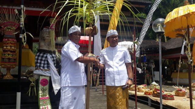 Sekretaris Daerah Kabupaten Badung I Wayan Adi Arnawa menghadiri pujawali di Pura Kayangan Jagat Ulun Swi Desa Jimbaran, Kuta Selatan Badung, Jumat (21/2). Pujawali yang dipuput oleh Ida Pedanda Gede Ngurah dari Griya Ujung Bindu Kesiman Denpasar tersebut dihadiri oleh Camat Kuta Selatan I Ketut Gede Artha, Lurah Jimbaran I Ketut Rimbawan, bendesa adat jimbaran I Made Budiarta, tokoh adat, masyarakat Jimbaran serta para pengempon Pura Ulun Swi Jimbaran.