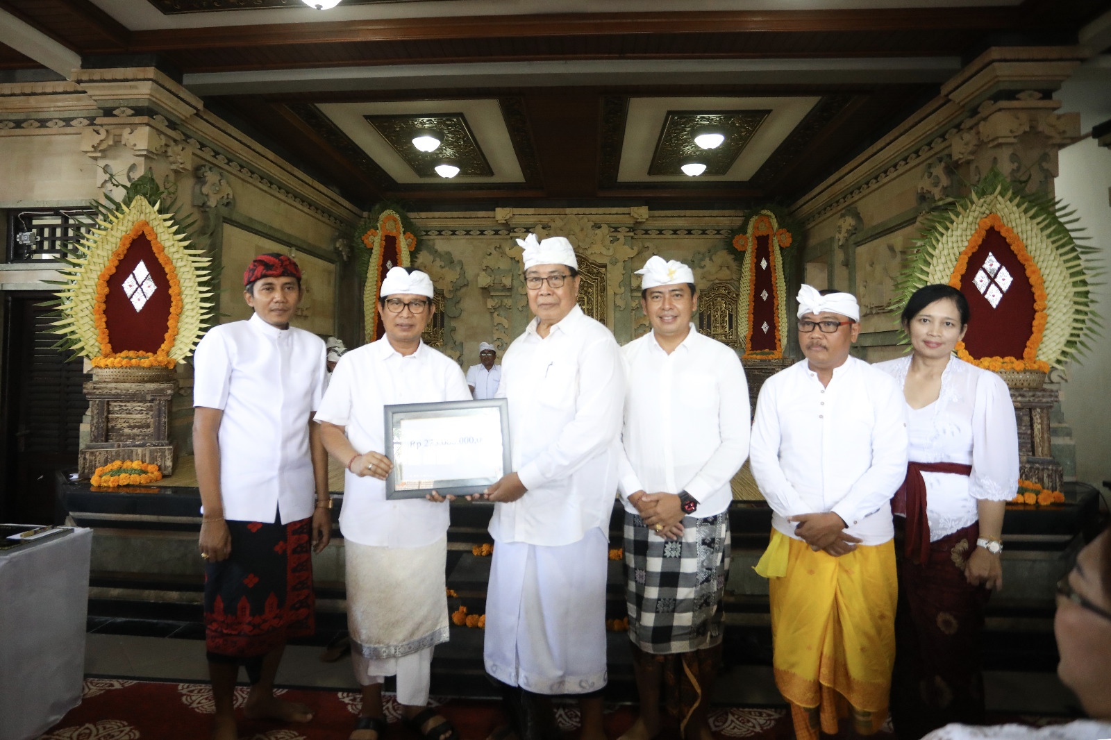 Dalam kesempatan ini, Pemerintah Kabupaten Badung membantu dana hibah perubahan untuk karya Rp 225 juta diserahkan secara simbolis oleh Sekda Adi Arnawa kemudian dilanjutkan memberi paraf pada prasasti.