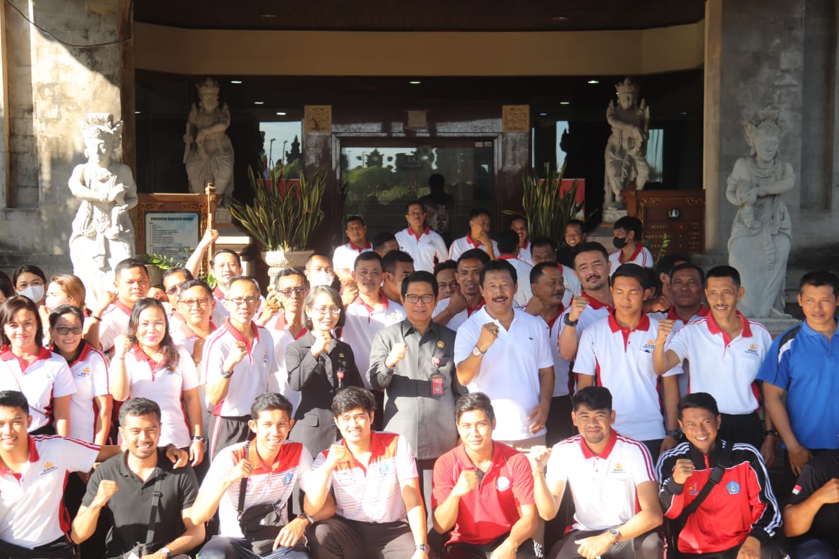 Sekretaris Daerah Kabupaten Badung I Wayan Adi Arnawa sekaligus sebagai Ketua Korps Pegawai Republik Indonesia (Korpri) Kabupaten Badung mewakili Bupati Badung melepas Kontingen Badan Pembinaan Olahraga (Bapor) Korpri Kabupaten Badung yang akan bertanding di Provinsi Bali dalam rangka memeriahkan Hari Ulang Tahun (HUT) Provinsi Bali Ke-64 tahun 2022, Jumat (5/8) bertempat di Lobi Kantor Bupati Badung.