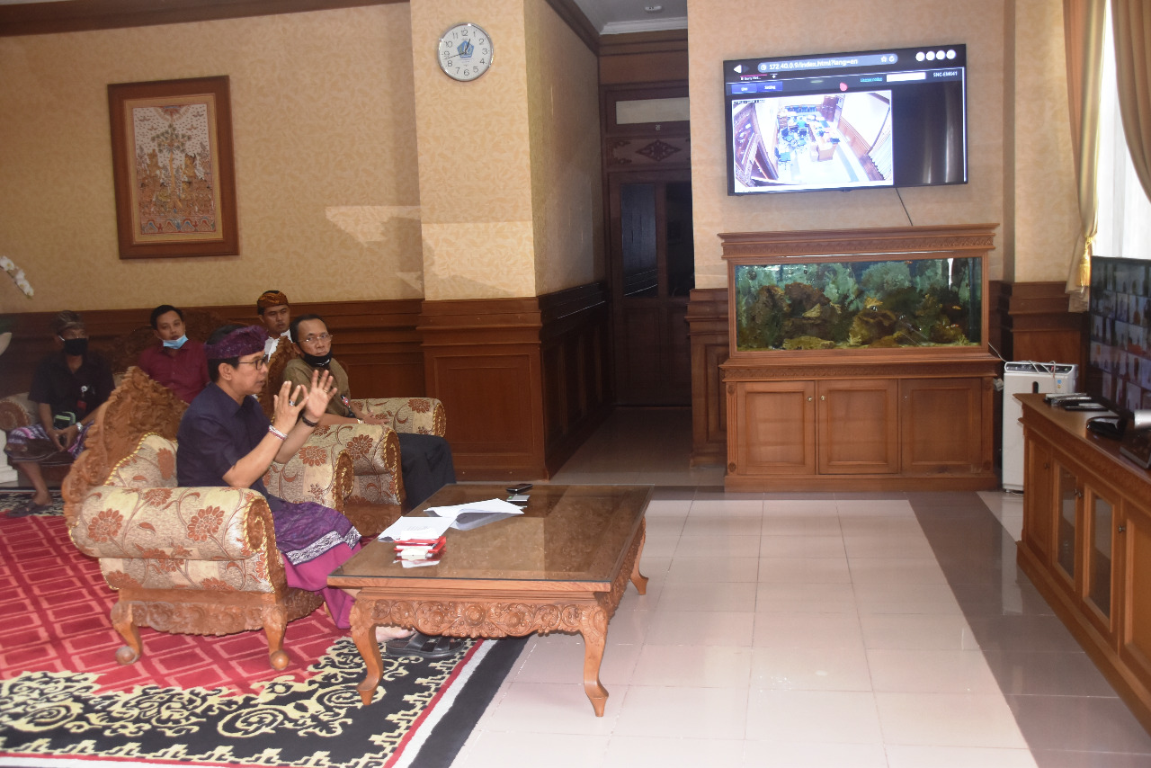 Sementara itu Kepala Dinas Komunikasi dan Informatika Kabupaten Badung I Gst Ngurah Gede Jaya Saputra melalui teleconference menyampaikan beberapa hal teknis di hadapan peserta mengenai materi data tentang bantuan penanganan covid-19 secara akurat, penandatanganan elektronik, pengadaan perangkat video teleconference di Kabupaten Badung serta penerimaaan siswa dengan pola Penerima Peserta Didik Baru (PPDB) secara online tahun ajaran 2020-2021.