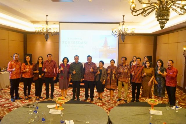 RAPAT KERJA – Foto bersama dalam Rapat Kerja Komisariat Forsesdasi Provinsi Bali Tahun 2023 di Homm Saranam Resort, Baturiti, Tabanan, pada Sabtu (23/9).