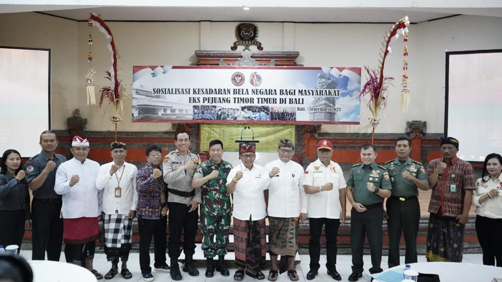 BELA NEGARA – Sekda Kota Denpasar IB Alit Wiradana menghadiri sosialisasi pembinaan kesadaran bela negara bagi eks pejuang Timor Timur, Kamis (7/9/2023).