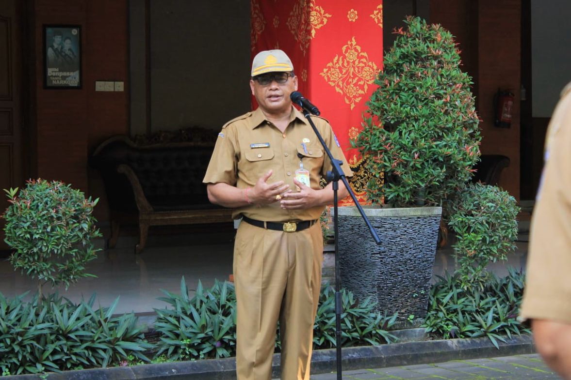 Sekretaris Daerah Kota Denpasar IB Alit Wiradana mengimbau seluruh ASN untuk jaga pelayanan publik dan produktivitas tetap optimal. Imbauan tersebut disampaikan saat memimpin apel disiplin di halaman Kantor Walikota Denpasar, Senin (3/3).