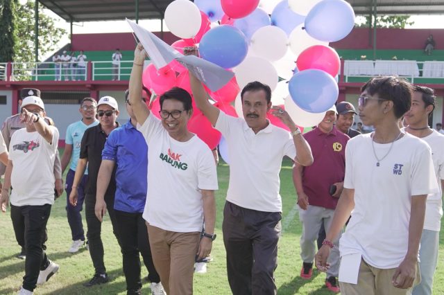 Mewakili Bupati Badung, Sekda I Wayan Adi Arnawa membuka Turnamen Sepak Bola Sekaa Teruna Widya Dharma Cup XI Tahun 2024 (STWD Cup XI) Banjar Adat Tengah dengan ditandai menendang bola pertama (kick off) di Lapangan Beji Mandala Desa Pecatu, Minggu (16/6).