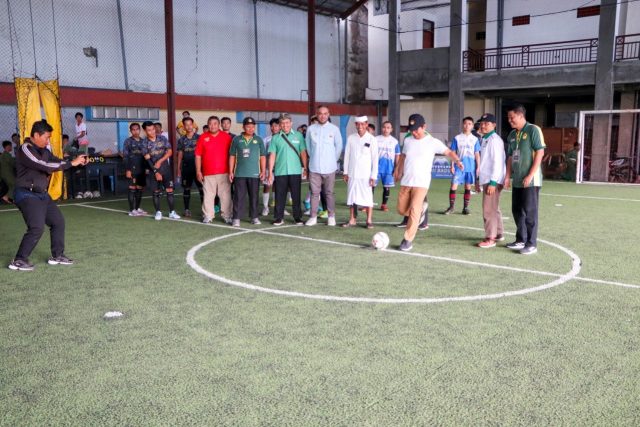 TURNAMEN FUTSAL – Sekda Adi Arnawa saat membuka Turnamen Futsal LDII Badung Cup IV Tahun 2022, bertempat di Lapangan Simpang Futsal, Kuta Utara, Sabtu (5/11).