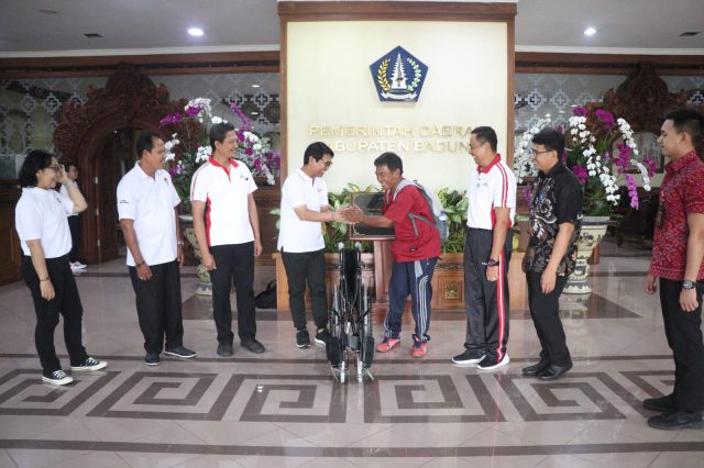 Sekretaris Daerah (Sekda) Kabupaten Badung I Wayan Adi Arnawa menerima Yayasan Tanggung Jawab Sosial Perusahaan (TJSP)/Yayasan Sarahita Parama Dharma dalam rangka pemberian bantuan kursi roda bertempat di Ruang Rapat Sekda Puspem Badung, Jumat (28/4). Turut hadir Asisten Perekonomian dan Pembangunan Setda Badung IB Gede Arjana, Kabag Administrasi Pembangunan AA Putri Mas Agung, Camat Mengwi I Nyoman Suhartana, Lurah Abianbase Dewa Rai, Bendahara Forum TJSP/Yayasan Sarahita Parama Dharma I Gede Suniada dan perwakilan keluarga penerima bantuan I Wayan Merek dari Abianbase.