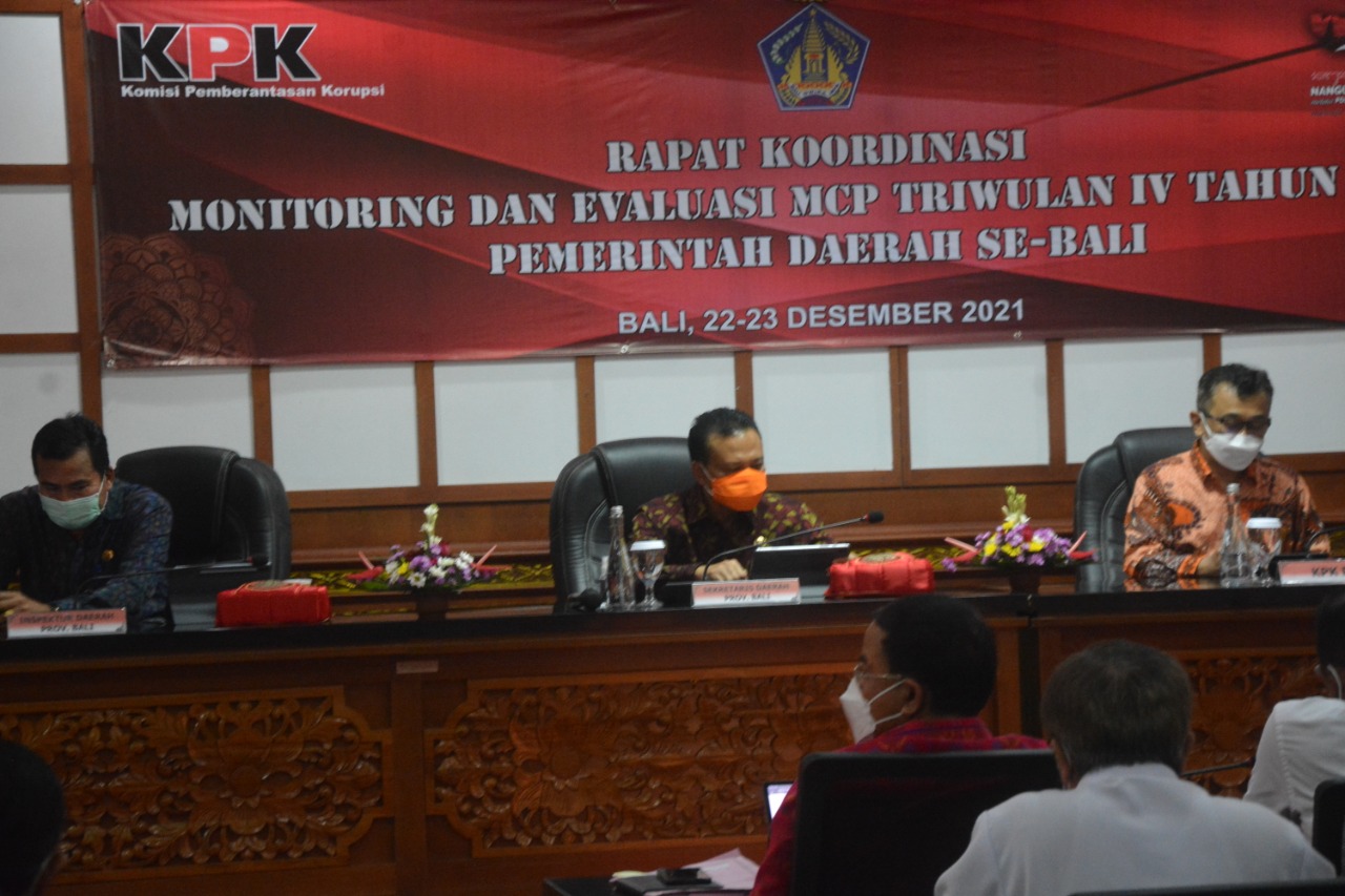 Penegasan itu disampaikannya dalam sambutan saat menghadiri Rapat Koordinasi Monitoring dan Evaluasi MCP Triwulan IV Tahun 2021 pemerintah daerah se-Bali yang berlangsung di Ruang Sabha Adhyasta Utama, Kantor Inspektorat Provinsi Bali, Rabu (22/12/2021).