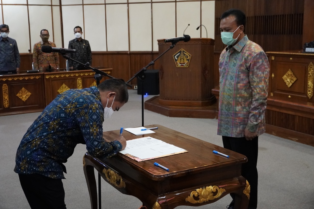 BPSK – Sekda Provinsi Bali Dewa Made Indra melantik anggota BPSK Kota Denpasar, Selasa (16/11/2021).