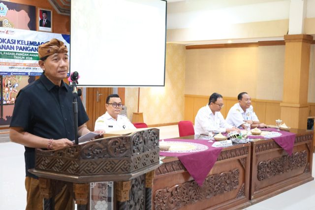 PANGAN AMAN – Sekda I Gusti Ngurah Eddy Mulya membuka Pertemuan Advokasi Kelembagaan Desa Pangan Aman, Sekolah dengan Pembudayaan Keamanan Pangan, serta Pasar Pangan Aman Berbasis Komunitas di Gedung Santi Graha, Denpasar, pada Rabu (22/4).