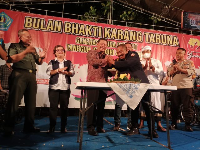 Puncak Peringatan Bulan Bakti Karang Taruna Kota Denpasar dilaksanakan pada Minggu (25/9) malam di Parkir Utara Taman Kota Lumintang, Denpasar. Hadir dalam kesempatan tersebut Sekretaris Daerah Kota Denpasar, IB Alit Wiradana bersama Wakil Ketua DPRD Kota Denpasar, Wayan Mariana Wandhira didampingi Ketua Karang Taruna Kota Denpasar, Ketut Ngurah Aryawan, Kadis Sosial Kota Denpasar, IGA Laxmy Saraswati beserta undangan lainnya.