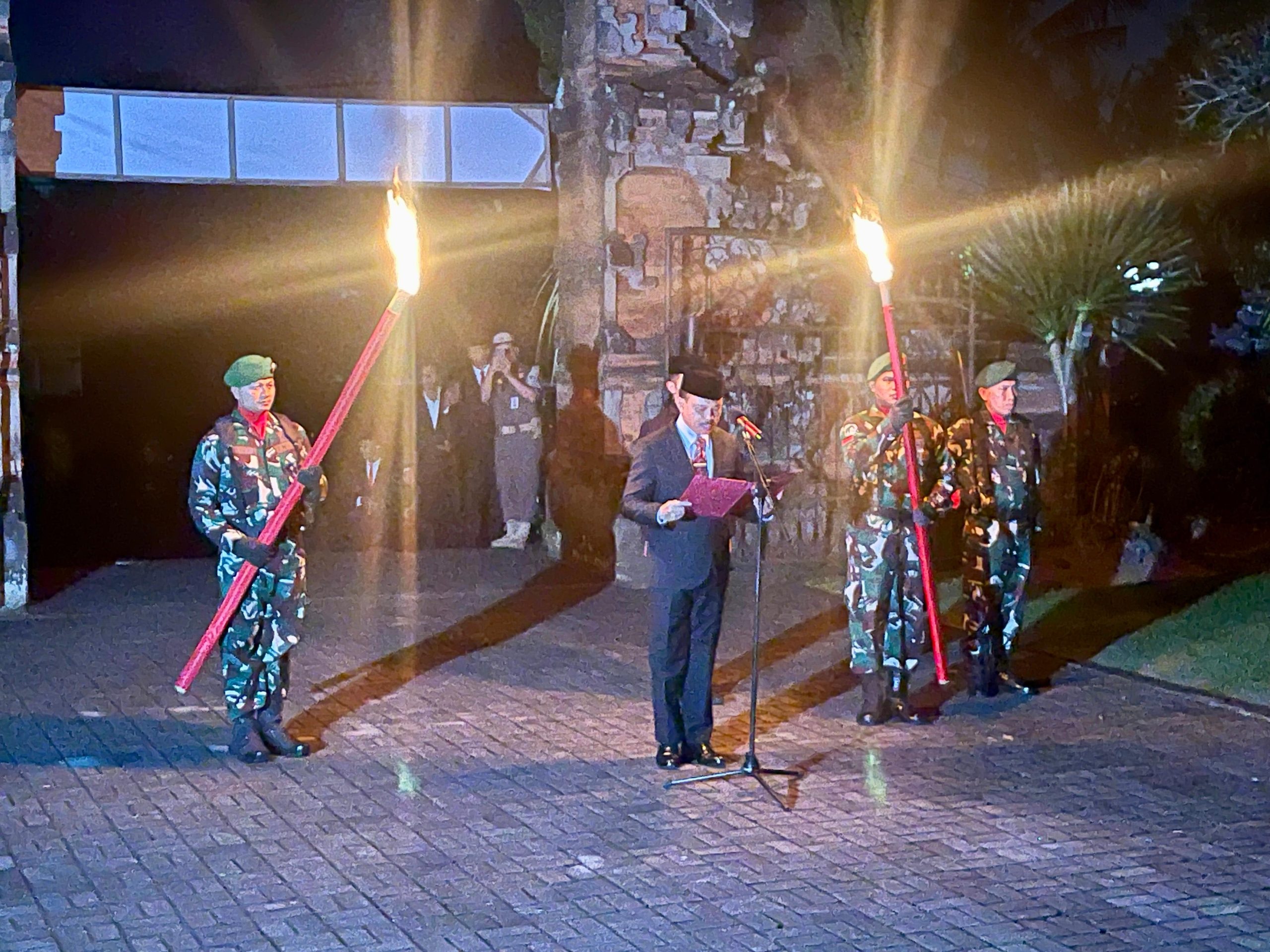 RENUNGAN SUCI – Sekda Dewa Made Indra menjadi Inspektur Upacara Apel Kehormatan dan Renungan Suci dalam rangka peringatan HUT Ke-80 Kemerdekaan RI Tahun 2025, Sabtu 16 Agustus 2025 malam, di TMP Pancaka Tirta, Tabanan.